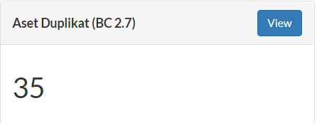 Asal data menu dashboard Asset Duplikat(BC 2.7) adalah data BC 2.7 RR yang memiliki data header dokumen BC 2.7 yang sama, namun secara nama detail barang berbeda