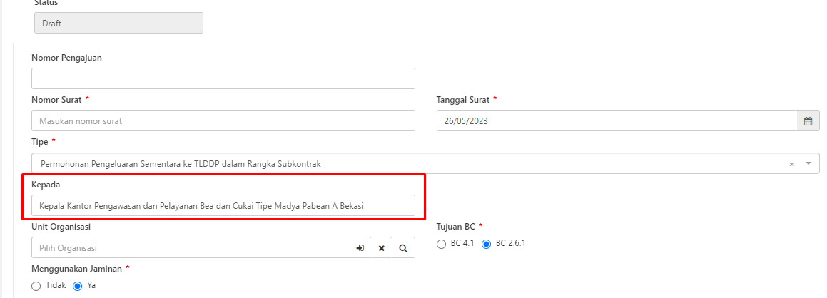 Jika diisi tidak, maka maka asal BC 4.0 tidak akan dimasukan sebagai total nilai jaminan
