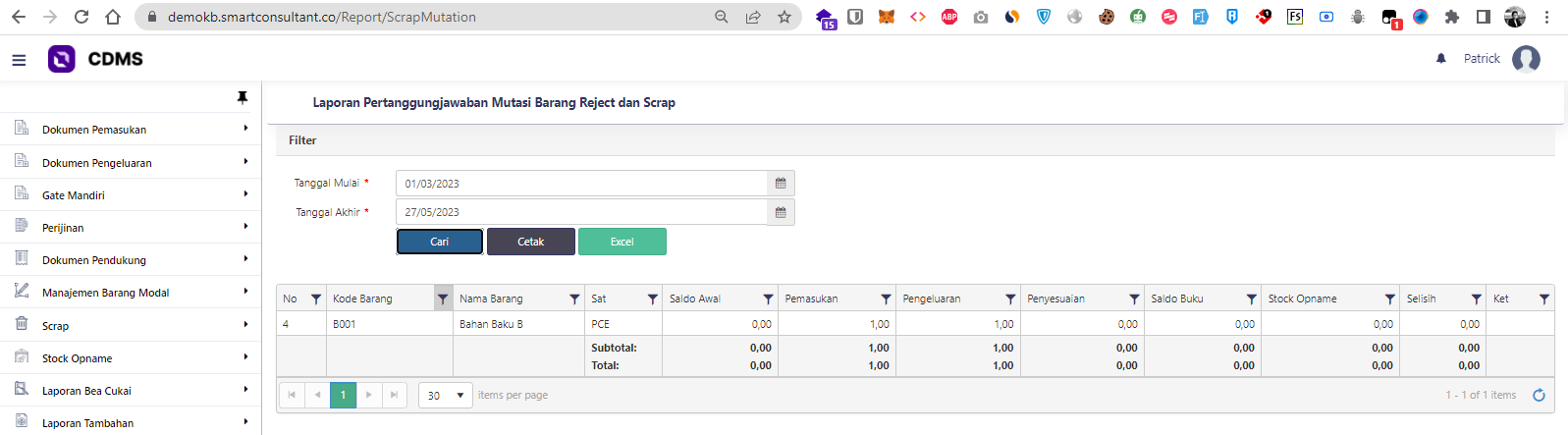 Kelola Scrap Material menggunakan Dokumen scrap di CDMS